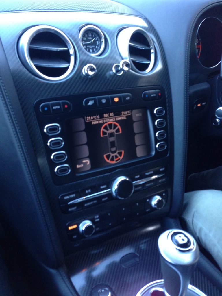 The 8″ multimedia touch screen is nestled between large buttons that control the climate settings and media options, below the analogue Breitling clock. Next to each of the air vents are the retro push/pull knobs to open and close the vent and allow or stop the flow of air. A nice, traditional touch.
