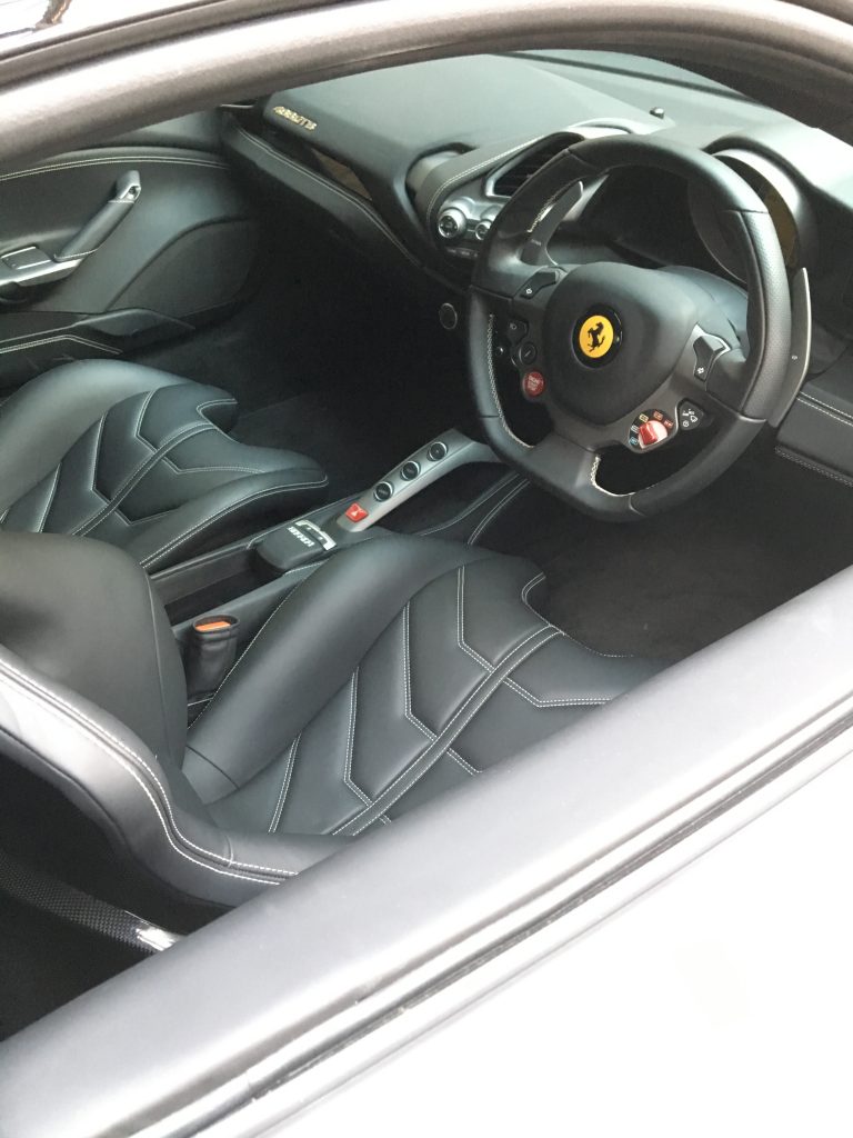 The 488 interior included the additional extra option of lightweight racing carbon seats in black. The mid engine sports car features a 3.9L twin turbocharged V8 engine is capable of producing 661bhp.